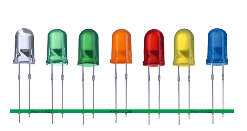 نکته: در ساختار دیود های منتشر کننده نور دو نوع LED وجود دارد ، یک نوع لامپ (سرب) و نوع تراشه (سطح نصب شده) هنگامی که جریان از طریق یک LED در جهت مثبت جریان می یابد ، ولتاژ تولید شده بین آند و کاتد ولتاژ رو به جلو (VF) نامیده می شود. واحد ولتاژ ولت (V) است.