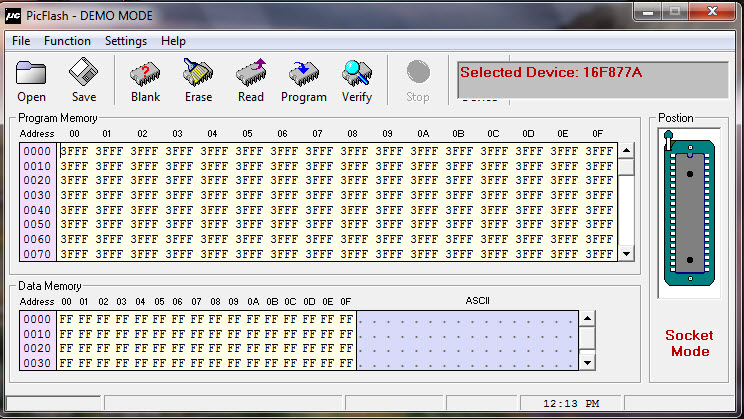 نحوه استفاده از پروگرامر به این صورت است برای شروع پروگرام کردن میکروکنترلر را داخل سوکت Zif قرار میدهید و نـرم افزار را باز میکنید ، به صورت خودکار سعی بر شناسایی مدل میکروکنترلر می نماید.